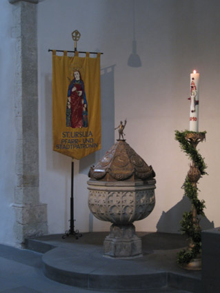 St. Ursula ist eine der 12 romanischen Kirchen Kölns und wurde vom Papst zur basilika Minor erhoben. Schiff und Turm sind romanisch, letzterer mit barocker Haube, und der Chor ist gotisch. Als Kirche der Schutzpatronin Kölns kommt St. Ursula ein hoher Stellenwert zu, der sich in der Ausstattung, wie Reliquienschreinen und Grab der Hl. Ursula, den Gemälden und Fenstern ausdrückt.