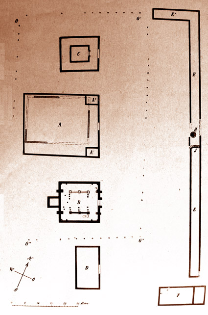 aufgefunden. Der größte bis jetzt bekannte Tempelbezirk wurde in den letzten drei Jahren durch die Verwaltung des Provinzialmuseums in Bonn in dem nicht weit von Münstereifel gelegenen Nötener Walde bei dem Dorfe Pesch ausgegraben. Es fanden sich die Grundmauern von vier in einer Flucht liegenden größeren Gebäuden, die von einer Wandelhalle und einer gemeinsamen Einfriedung umgeben waren. Ein noch vorhandener tiefer Brunnen von 1 ½ Meter Durchmesser, der in schön behauenen Steinen aufgemauert ist, liegt in der Mitte der Halle. Von den vier Gebäuden sind zwei besonders bemerkenswert. Das eine hatte einen Umgang und bildete einen Tempel für sich, das andere war mit zwei Reihen hoher Säulen geschmückt, deren schön bearbeitete Sockel noch zum Teil vorhanden sind. Durch die Säulenreihen war der Innenraum nach Art unserer dreischiffigen Kirchen gegliedert, auch hatte das Gebäude dem Eingang gegenüber einen chorähnlichen Anbau. Die Stellung in gradliniger Flucht und die gemeinsame Umzäunung zeigen die Zusammengehörigkeit der Gebäude zu einem Tempelbezirk. Diese Tatsache hat sich merkwürdigerweise auch im Volksmunde erhalten, indem die Bewohner der Nachbarorte die mit Buchenbäumen und Eichenschälwald bewachsenen Trümmerhaufen vor der Ausgrabung als Heidentempel und den mit Laub gefüllten Brunnen als Heidenpütz bezeichneten. |