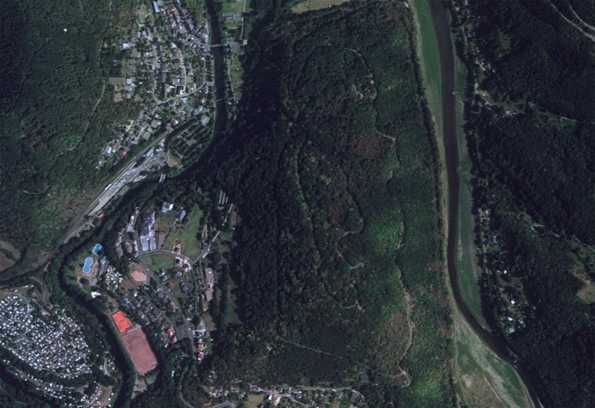 Dieser Berg heißt Meuchelberg. Noch bevor Luftaufnahmen möglich waren und die Figur bekannt war, nannte man sie Am steinernen Mann. |